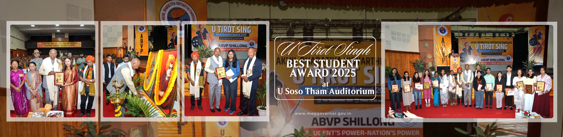 The Raj Bhawan, Meghalaya formerly known as Goverment House, is the official residence of the Governor of Meghalaya. It is located in the capital city of Shillong, Meghalaya. Spread over an area of 30.67 acres, the Raj Bhawan, Meghalaya consist of three blocks, namely, Main block, Kitchen Garden and Staff Quarter. The compound is surrounded with green lawns, flowers beds, trees, water fountain and Monoliths (Mawbynna) which add traditional and cultural value to the indegineous local people.