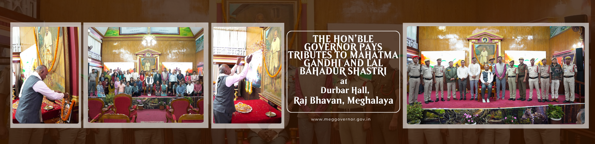Raj Bhavan, Meghalaya extends greetings on Gandhi Jayanti, remembering the ideals of truth, non-violence and harmony that continue to guide our nation.